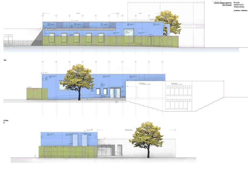 Bis vor einigen Jahren gehörte der Gebäudeteil des heutigen Begegnungszentrums noch der katholischen Nachbargemeinde Sankt Johannes in der neuen Stadt. Als sie einen Teil ihrer Räume verkaufen musste, entstand die Idee, dort das Zentrum aufzubauen. Heute ist das Haus der jüdischen Gemeinde in Chorweiler auf der einen Seite flankiert von der katholischen, auf der anderen Seite von der evangelischen Kirchengemeinde. Der Dialog zwischen den Religionen beginnt hier als tägliches Gespräch zwischen Nachbarn.